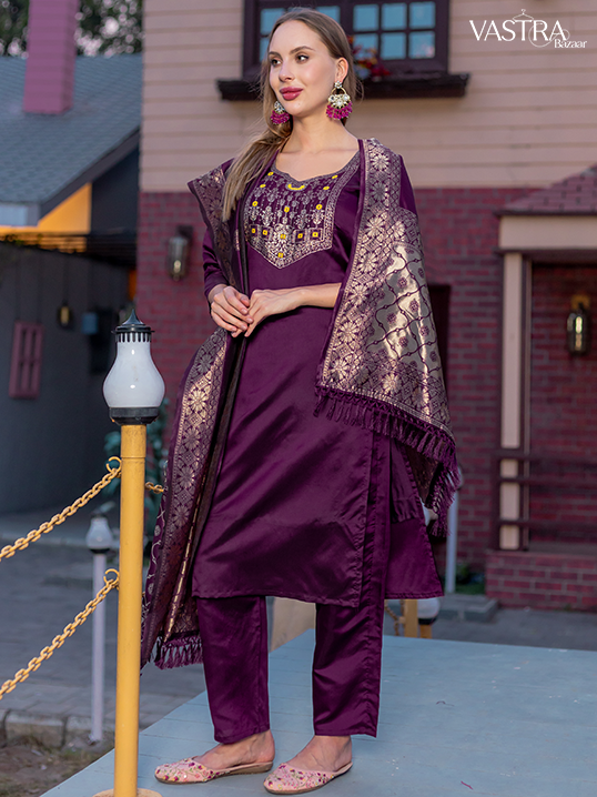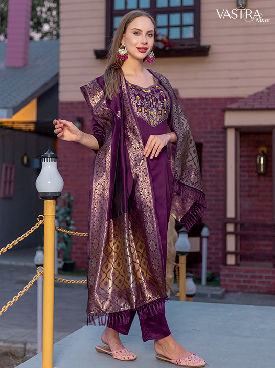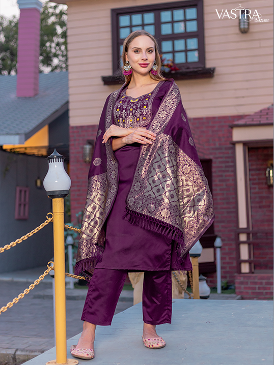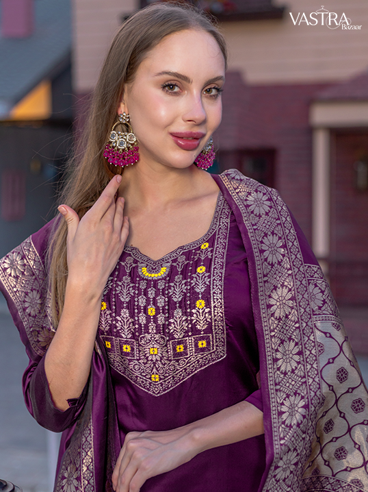Regular Thread Work Chanderi Silk Kurta With Trousers